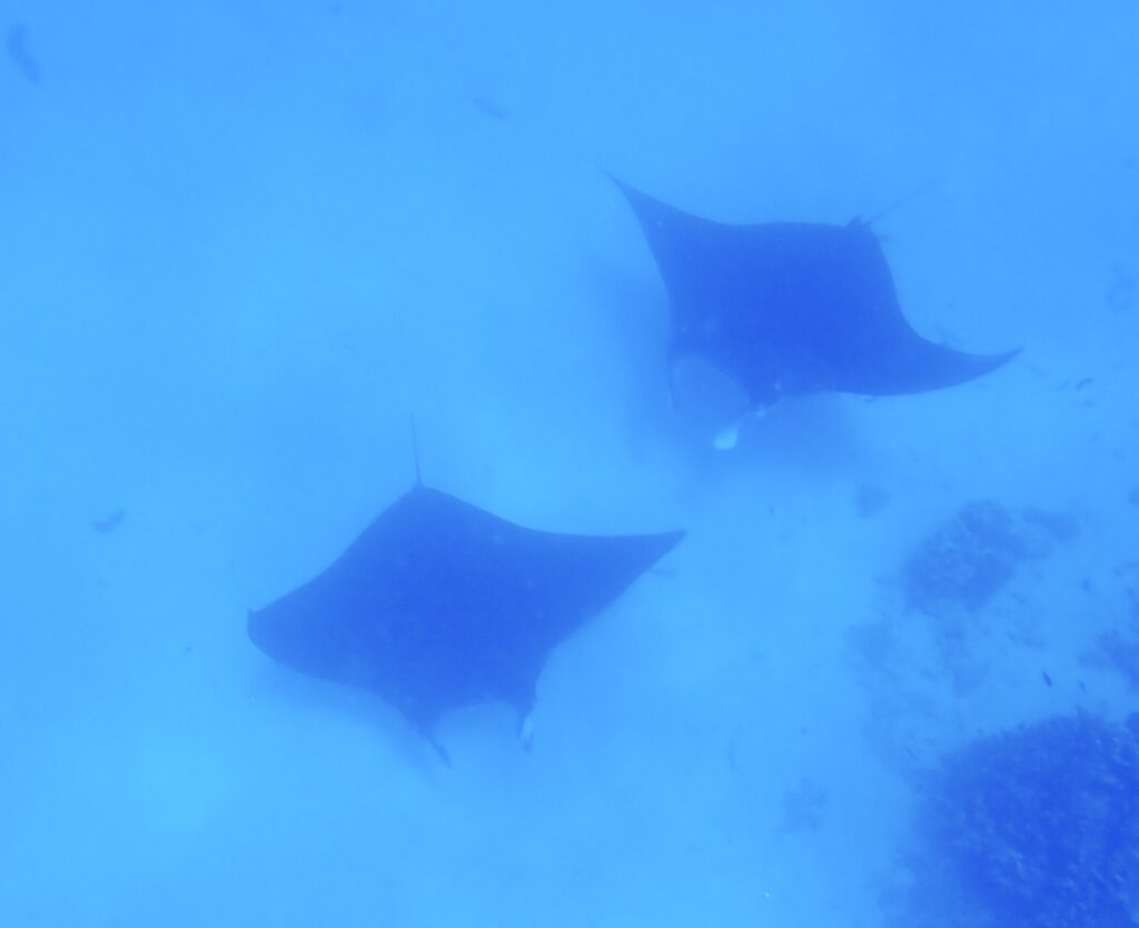 Det finns också en Manta cleaning station. Dit åkte Lars och jag idag och vi hade tur som en tok. För det första hittade vi stället direkt. Inte så enkelt som man kan tro. Sen var två mantor där och blev rengjorda. Vi tittade fascinerat på. De är så vackra. Så lugna, så stora, så coola. De är som undervattensfåglar.