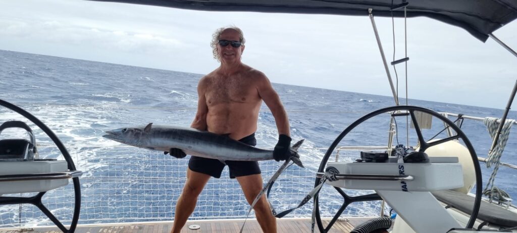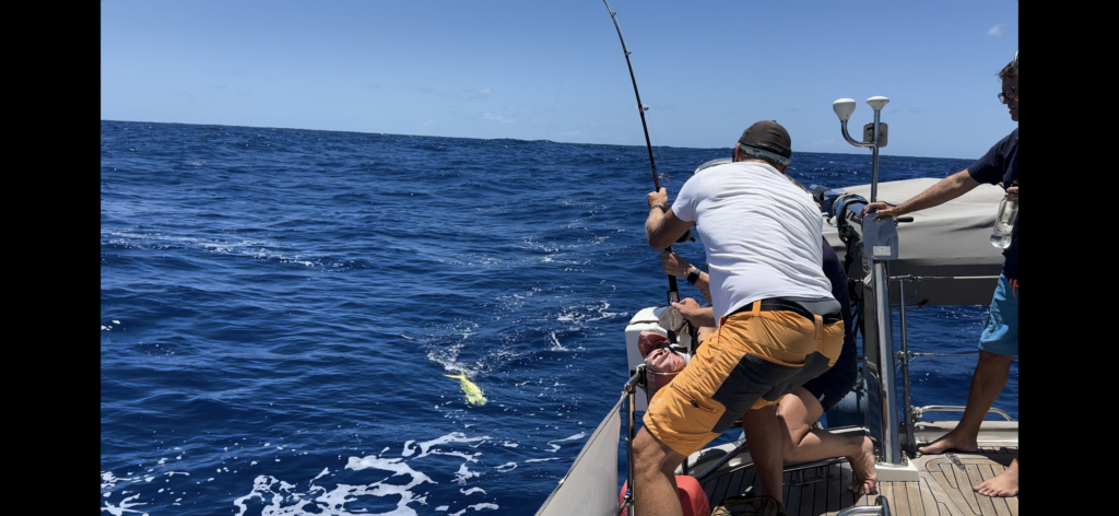 Vi fångade nästan en fisk igen häromdan en Wahu. Och sen igen igår, en Mahi-Mahi. Nästan. Vi fångar alltså fisk nästan varje dag. Tex igår, då fångade vi nästan en fisk. De smiter alltid. Måste jobba på det. Våra kompisbåtar har det gått bättre för.