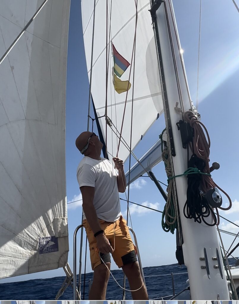 Skumpa 02,30 när vi äntligen ankrat. Det är 23 distans mellan mållinjen och hamnen och hamnen kan man bara gå in i under dagtid, så vi ankrade en natt och gick sen in till land dagen efter.