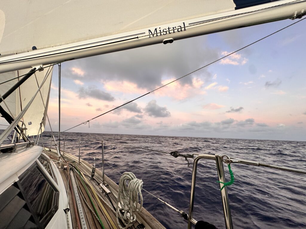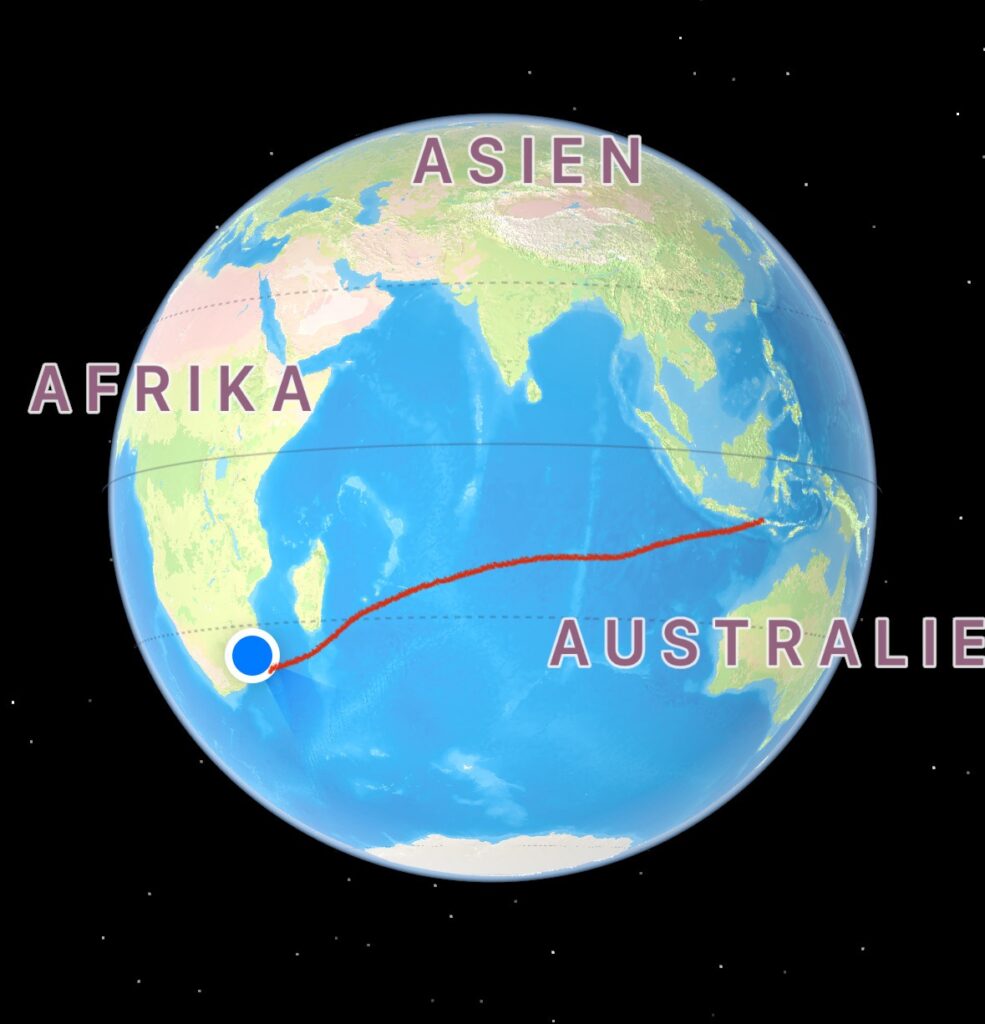 Jag har seglat över indiska oceanen 😱. Typ ett kvarts varv runt jorden. Kom fram i natt till Zululand yacht club i Richards Bay, Sydafrika efter sista etappen från Reunion som tog 8 dagar med varierande segling. Genom både läskig front med hårda vindar där man bor i en tvättmaskin som fått spunk och hoppar och far. Men även vindstilla med platt vatten som innebär bad och delfiner. Sedan starten i Indonesien den 18/9 har jag nu seglat 5115 sjömil. Totalt 34 dagar till sjöss. Lite till blir det nedför kusten här, till Kapstaden med rundning av Godahoppsudden innan jag mönstrar av S/Y Mistral om några veckor.