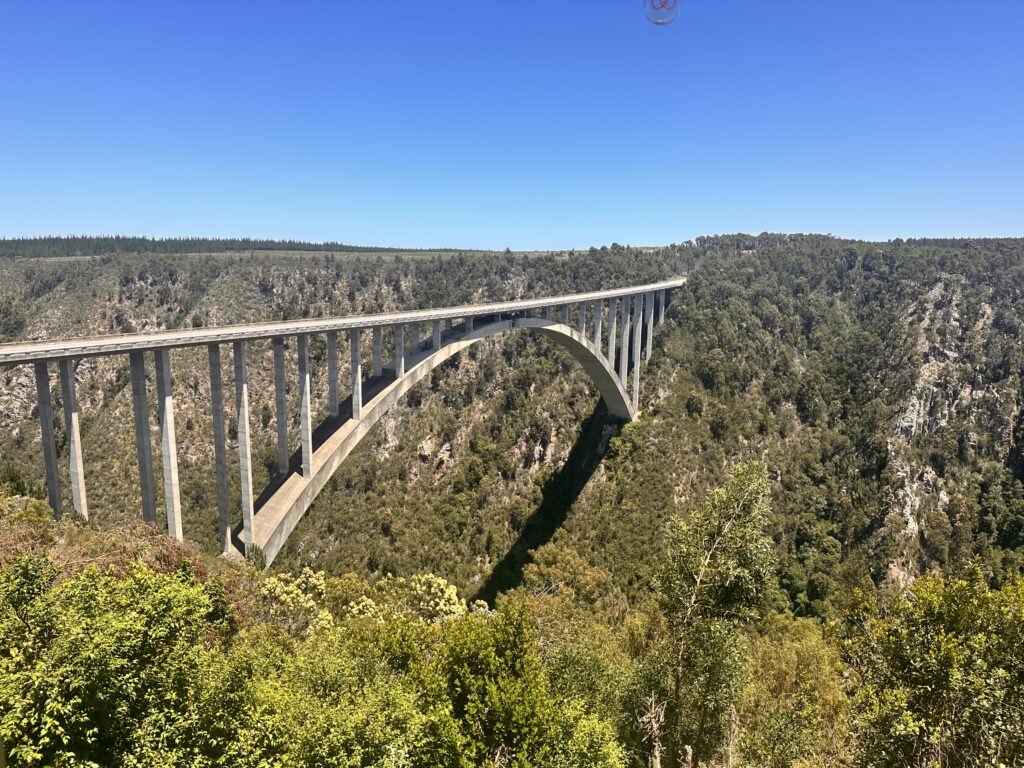 Idag har vi kollat in sydafrikas högst bro, 216 meter. Där kör de bungyjump😱. Valde bort det . Nu har vi kommit fram till Mussel bay och i morgon skall vi köra zipline och hoppa i sanddyner. Vi är väldigt nöjda med vårt beslut.