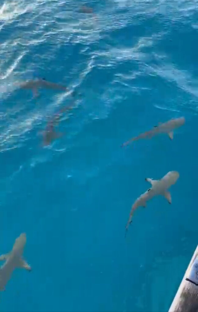 Nu är vi på Cocos!!! En atoll mitt ute i ingenstans på indiska oceanen. 27 öar varav 2 är bebodda. Totalt 600 bofasta och det får vara max 144 turister här samtidigt. Vi tråcklade oss igenom korallrevet vid halv 7 i morse, när vi la i ankaret kom genast 6 black tip hajar och nyfiket kollade in oss. Sen kom champagnen fram, kl 07.07 🍾